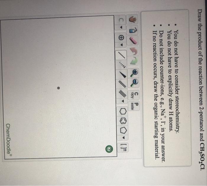 D Both reactants are asymmetrical so two products are possible. Draw the product of the reaction between 2-pentanol and CH2SO2Cl. AYou do not have to consider stereochemistry.